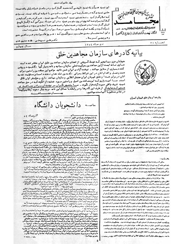 مجاهدين خلق ايران را مستضعفين ايراني چونان گلي ميدانند كه بر نهال آرزوهاي بهروزي آنان روئيده است. همان آرزوهائي كه با فريادهاي خشمگينانه و بيداركننده سيدجمالها و نائينيها بيدار گشت و در طول يك قرن زندگي پرتلاطم ملت ما مطابق خواست خدائي و ضروريات تاريخي رشد كرد و پس از گذراندن فراز و نشيبهاي بسيار به خاطر حقانيت خود زنده ماند و هر دم بر سرسبزي آن افزوده گشت و بالاخره در بهاران سالهاي خونين بعد از 50 به گل نشست. چرا ننشيند كه خونهاي پاكي از ديرباز اين نهال را سيراب كردهاند و چرا نبالد، اين درخت كه رستنش از ظلمات ظلمها و سياهچالها و گرسنگيها و شكنجههاي مداوم به سمت نور حياتبخش خدائي است و خلق مسلمان ايران از همان اوان نشان داده است كه نشانههاي اين درخت ريشه در زمين را خوب ميشناسد و علت پشتيباني بيدريغ و صادقانهاش نيز در اين ساليان اخير از سازمان مجاهدين خلق مسلمان ايران به همين دليل بوده است.