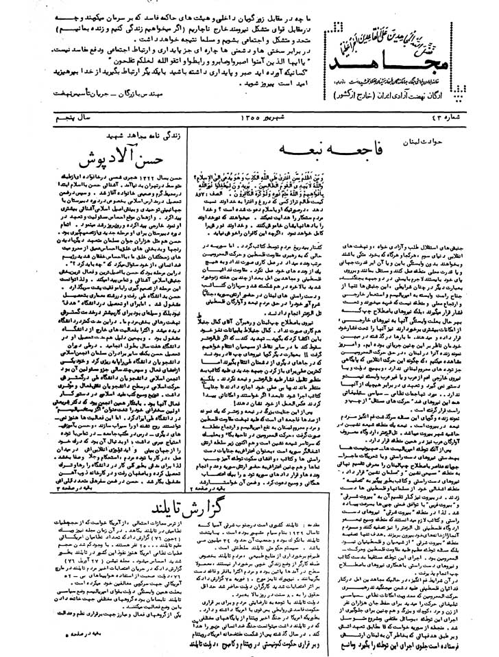 4ـ ما اعمال جنايتكارانه و استعماري دست‌راستي‌هاي لبنان را كه بنام استقلال آن كشور و در حقيقت در خدمت امپرياليست‌‌ها انجام گرفته و مي‌گيرد شديداً محكوم مي‌كنيم و اگر در هربار جنايات آنها كه از حد بدررفته است برنمي‌شمريم فقط از آن جهت است كه اعمال آنان شناخته شده و از نوكران مستقيم استعمار جز اين انتظاري نيست.